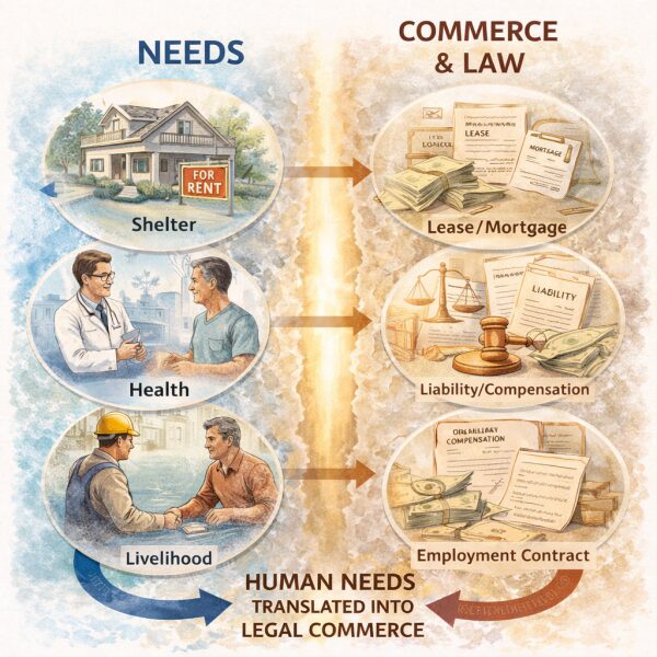 At its foundation, the law needs a way to organize relationships between people. It needs a structure that can define who owes what, who is responsible for what, and what happens when something goes wrong. Commerce provides a practical language for doing that.